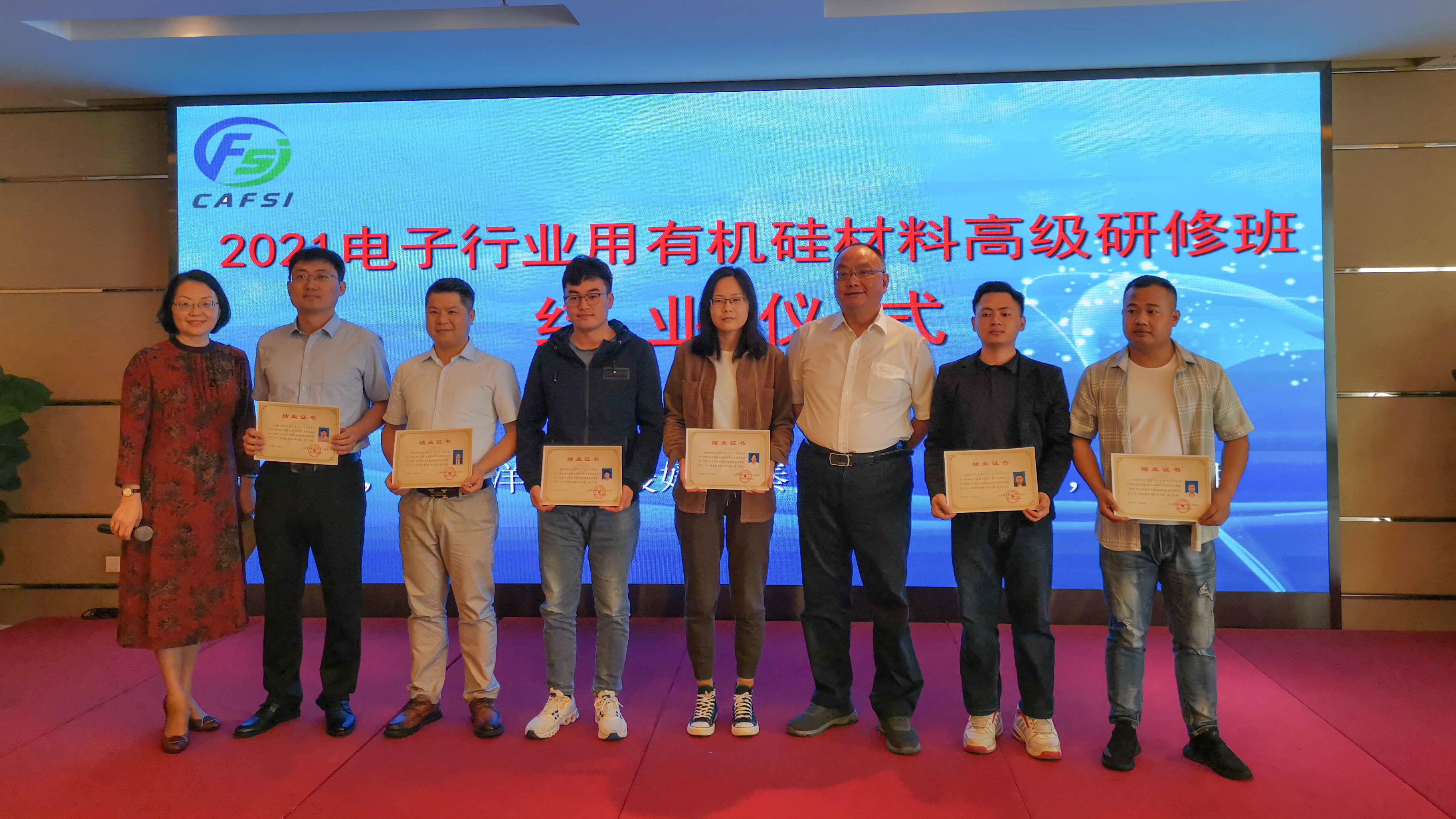 锻造高素质人才,建设高水平队伍。3月14日至19日,由中国氟硅有机材料工业协会主办,皇冠hg2021手机app下载协办“2021年电子行业用有机硅材料高级研修班”在广州举办。来自全国有机硅行业相关企业及科研单位60余名中高层管理、销售、技术和生产人员齐聚羊城,为行业高质量发展集思广益、交流心得、共享成果。中国氟硅有机材料工业协会副理事长、皇冠hg2021手机app下载董事长王跃林博士出席结业仪式,代表氟硅协会和各支持单位致辞并颁发结业证书。