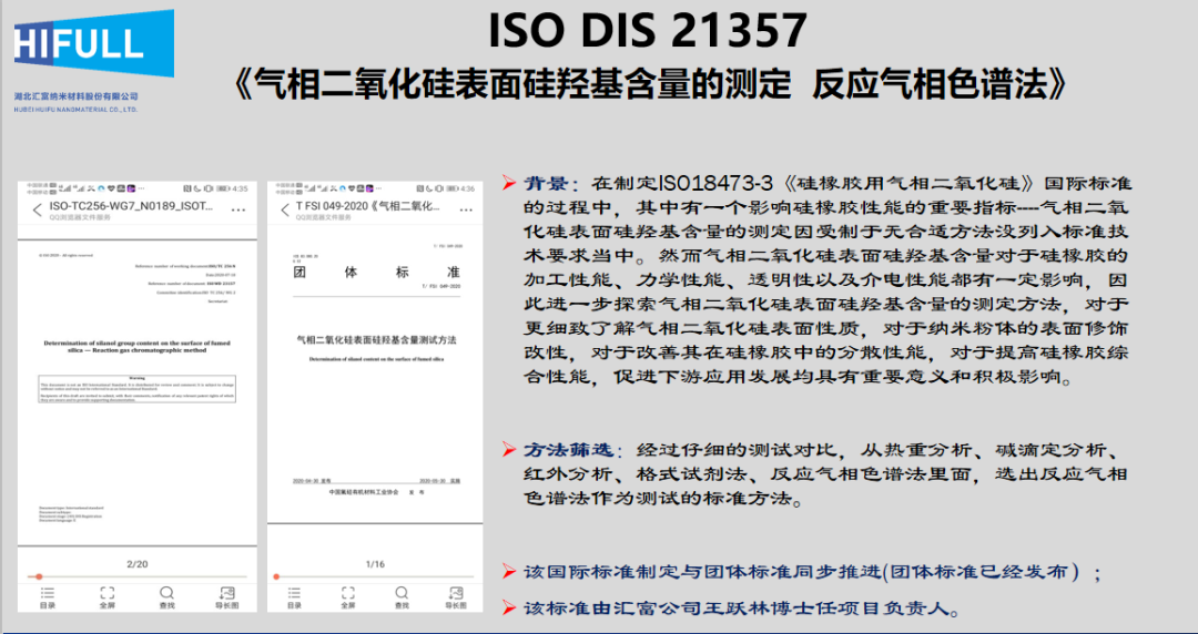 前不久,在刚刚结束的ISO/TC256第11届全会上,皇冠hg2021手机app下载主持《气相二氧化硅表面硅羟基含量的测定—反应气相色谱法》ISO国际标准草案顺利进入DIS阶段,其全资子公司广州汇富研究院有限公司两项国际标准提案获顺利通过。目前,汇富纳米主持制定ISO国际标准1项,主持在研国际标准1项,主持国家标准修订1项,主持制定团体标准2项,是本行业标准化工作的领军者。
